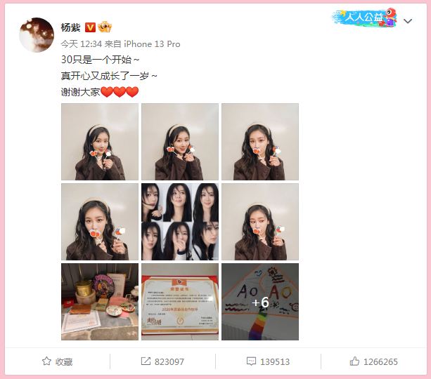 昵称叫“是潇潇呀27”的网友留言祝福到:29岁的杨紫再见!30岁的杨紫你好!这是陪你一起走下去的第四年,新的一岁,希望你能开心快乐,平安顺遂!愿你的眼中总有光芒,活成你想要的模样!做你想做的,爱你想爱的,吃你想吃的,自由自在,所想所愿皆能实现!不论前方如何,紫米永远都会在背后支持你,爱你 生日快乐呀!宝贝@杨紫