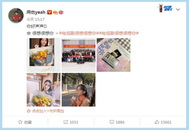 演员周也微博宣传周也主演电视剧,周也微博原文: